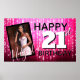 Rosa Quente com Faíscas Caindo! Adicione nome e idade personalizados a este design feminino chique e fofo! Cartaz Grande