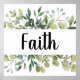 A design apresenta a palavra Faith aninhada dentro a buquê de folhas de eucalipto. Parte do Conjunto Fé/Esperança/Amor - 1 Corintianos 13:13. Faz um presente excelente!