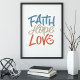 Faça uma declaração com esta bela poster de "Faith Hope Love", Esse poster apresenta um design de caligrafia de pincel impressionante, feito expressivamente com cuidado e atenção aos detalhes. A mensagem "Faith Hope Love" é um eterno que lembra os valores baseados na fé que realmente importam.