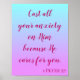 Um dos meus versos favoritos de Bíblia sobre a paz, este Poster diz: "Dedique toda a sua ansiedade a Ele porque ele se importa com você" "1 Peter 5:7". O verso está escrito em lindas fontes cursivas cor-de-rosa, em uma ombre azul e rosa. O Capítulo e o Verse estão escritos num texto-padrão rosa complementar. Compre seu poster Verso Bíblia de hoje!