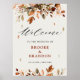 Poster de boas-vindas do Elegante casamento outono rustico, com folhas de eucalipto castanhas, vermelhas, laranja, verdes. Entre em contato comigo para obter ajuda sobre a personalização ou se você precisar de outro produto com este design.
