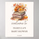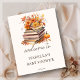 Celebre a chegada de um precioso pequeno com nosso sinal de boas-vindas do Tema do Livro de outono! Este carinhoso sinal de boas-vindas apresenta uma pilha de livros adorados com flores silvestres autóctones e abóboras em fundo creme. Perfeito para as mães que adoram livros, este sinal de boas-vindas promete dar o tom para um chá lúdico e memorável.