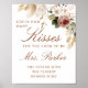 Adicione um toque doce e divertido ao seu chá de panela com este elegante sinal de jogo "Adivinhem quantos beijos". Apresentando um buquê floral de aquarela em tons quentes de outono — incluindo rosas de burlômetros, florais de marfim, verde macio e sotaques de ouro — este design coordena-se perfeitamente com o resto da suíte de Chás de panela de outono. Mostra ao lado de um boião de beijos de chocolate e deixa os convidados darem um palpite — o mais próximo ganha um prêmio!