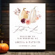 Este sinal de boas-vindas ao casamento (poster) apresenta uma aquarela de abóboras amarelas adornada com burgundy, marrom e queimada de flores laranja sobre as folhas do outono. Para personalização mais avançada deste design, clique no link "Personalizar mais".