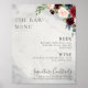 complemente seu evento de casamento rústico com este lindo menu de bar de casamento de flores de peônia e rosa clássica. O design apresenta lindas flores cor-de-rosa pintadas à mão, rosa, azul, azul-marinho e burgundy com folhas verdes, agrupadas de forma elegante em buquês para enfeitar os cartões de convite do seu evento.