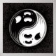 Símbolo Yin Yang feito de dois fantasmas assustadores em contraste preto e branco. Palavras-chave: equilíbrio, chinês, contraste, fantasma, halloween, símbolo, yang, yin, yang, yinyang