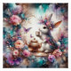 Póster Fantasy Art Purple Teal Watercolor Bunny Tea Party