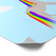 Este incrível poster apresenta uma imagem design gráfica de um unicórnio colorido bronzeado com um mano e uma cauda coloridos do arco-íris. Também tem cascos coloridos de ouro e uma buzina de ouro brilhante. O unicórnio é acompanhado por um par de nuvens brancas e peludas com texto colorido do arco-íris no meio que diz "Parabéns".