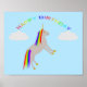 Poster Fantasy Birthday Unicorn Rainbow and Clouds
