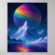 Abaixo de um céu enfeitado com um planeta radiante e iluminado pelo arco-íris, torcendo picos cristalinos ergue-se como guardiões da eternidade. O seu brilhantismo reflete num lago cósmico cintilante, pintando o mundo com cores além da imaginação. Este reino da fantasia sussurra de maravilha infinita — um lugar onde os sonhos ascendem a mais alto do que montanhas e a esperança brilha mais do que as estrelas.