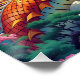 Póster Fantasy Cute Orange Dragon Mountains