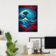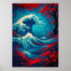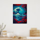 Um trabalho de arte de fantasia vibrante inspirado pela clássica onda do Excelente, reimaginada com águas azuis arrojadas, árvores cerejeiras floridas em vermelho feroz, e uma visão distante do Monte Fuji. Esta poderosa mistura de tradição e estilo de fantasia japoneses faz uma peça impressionante para amantes da arte japonesa, temas oceânicos e paisagens dramáticas.