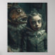 Um design de fantasia de duas partes estranhas, peixes, parte gêmeos humanos em um filme de terror, estilo de arte