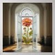 Essa trabalho de arte imaginativa apresenta uma fusão cativante da arquitetura clássica e da natureza surreal. Dentro, ornamentado, grande salão com tetos altos e janelas arcaicas, duas portas de vidro elegantes abertas para revelar uma flor torre e sobredimensionada na flor do cheio. As pétalas cor-de-rosa e pêssego vibrantes contrastam com o refinado e clássico interior, simbolizando o poder da natureza se separando do confinamento. A justaposição surreal entre os elementos naturais e arquitetônicos evoca uma atmosfera sonhadora, convidando os espectadores a refletir sobre o equilíbrio entre as criações humanas e o mundo natural.