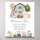 Add a personal touch to your baby shower celebration with these stylish and memorable party items! Design features farm animals (cow, horse, sheep, pig, rooster, chicken), blue barn and blue tractor on white background.