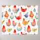 Galinhas de fazenda bonitas e felizes, desenho aconchegante, colorido e rústico. Adicionar texto, adicionar imagens, redimensionar imagens...faça-o seu. :)