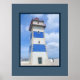 Design com tema náutico com decoração de farol com cor d'água em quadro azul escuro. É possível mudar a cor de fundo e adicionar uma diferente à design com sua escolha.