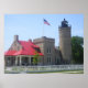 Um guardião de farol fica na varanda do complexo de farol localizado na costa norte de Michigan, no estreito de Mackinac.
