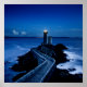 Belo céu azul e águas oceânicas enquanto o farol se senta na parede e rochas guiando o caminho. Um presente maravilhoso para o amante do farol em sua vida.
