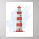 Poster Farol Vermelho Branco Azul Tema Náutico Oceânico