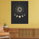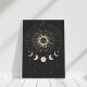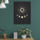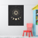 Boho Black e Beige Zodiac Moon Fases Poster com o Sol, fases da Lua, estrelas e sinais de zodíaco.