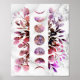As fases da lua representadas em bonito sombras de pincel e lavanda, moldadas por elementos botânicos correspondentes a um fundo branco suave e a uma margem de cinza.
