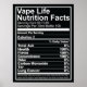 Aproveite esta poster de paródia com base nos fatos nutricionais encontrados em caixas de comida. Vape!
