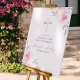 Poster Faux Dourado Cross & Flowers Primeira Comunhão San