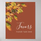 Pôster de Favor de casamento outono folhagem marrom rústico. Todos os textos estão pré-organizados para você personalizar fácil e rapidamente com seus próprios detalhes.