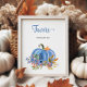 Adicione um toque sazonal aos favores do seu chá com este lindo letreiro ilustrado. Com elementos de outono desenhados à mão e uma abóbora azul, é o detalhe perfeito para a celebração do outono do seu menino.