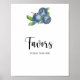 Cartão de convite para chá de fraldas em forma de grão com ilustração aquosa de mirtilos. O texto diz "um bebê doce de fruta está a caminho." Itens correspondentes disponíveis.