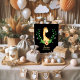 Favores assinam para seus convidados para seu chá de fraldas com uma linda, aquarela, girafa, sorrindo e sentando sobre uma coroa floral tropical adornada com um hibisco amarelo e verde. "Favors" texto amarelo claro sobre fundo preto em girafa.