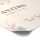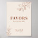 O sinal de favor é caracterizado por um estilo "boho" com trabalho de arte floral e cores verdes e bege neutras.