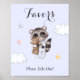 Poster Favores do Chá de fraldas Azul Gentle Boy Raccoon
