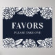 Marinho de casamento floral azul poster "Favores, por favor, pegue um".