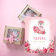 Este é o sinal Favors para o chá de fraldas. O design é um flamingo cor-de-rosa querido, bailarina, mãe e menina, com rosa rosa rosa rosa, flores florais na cabeça e um buquê de rosa maior ao lado dos corpos. Fundo cor-de-rosa macio com triângulos de ouro bonitos. Centro branco com flores rosas cor-de-rosa na borda inferior.