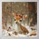 Poster Fawn Red Berries Snow Forest Caindo Folhas
