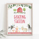 Este sinal bonito será um excelente adicional para a decoração do seu partido. Enquadre o sinal e mostre-o na mesa das bebidas. O design apresenta animais de fazenda aquosos com um confete verde e colorido e uma borda vermelha de gingham.