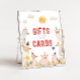 Coloque a diversão no nosso Sinal de Mesa editável "Presentes e Cartões"! Apresentando animais de fazenda adoráveis como ovelhas, porcos e patos em um charmoso design, este sinal é perfeito para guiar convidados para a sua mesa de presentes ou para a sua área de entrada. Com seu estilo vibrante e lúdico, ele adiciona um toque rústico e alegre à sua celebração temática de fazenda, fazer-a funcional e festiva!