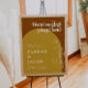 Esta placa de boas-vindas do casamento apresenta um fundo laranja queimado, arco colorido de mostarda, florais infantis e uma fonte temática divertida dos anos 70. Esta poster de boas-vindas é perfeita para um casamento retrô, chá de fraldas ou qualquer outro evento especial. Todas as cores são editáveis, basta clicar no botão azul 'editar usando a ferramenta design' para personalizar as cores que correspondem ao seu evento. Par com qualquer coisa na coleção das FARRAH para um olhar coeso.