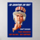 Este poster da Segunda Guerra Mundial apresenta o Presidente Franklin Roosevelt vestido como Tio Sam com o dedo aos lábios dele, exortando-o a ficar quieto. Ele declara: "Estou contando com você! Não discuta — Movimentos de tropas, navegação de navio, equipamento de guerra". Celebrar a História Americana e WW2 com este produto de poster de guerra vintage restaurado digitalmente da "The War Is Hell Store". Quer mais produtos militares e históricos? Check-out