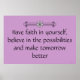 Citação inspiradora de Robert Gebbie. Essas afirmações fazem parte de nossos escritos motivacionais e inspiracionais. O texto diz: Tenha fé em si mesmo, acredite nas possibilidades e faça o amanhã melhor.