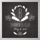 Celebre o dia do casamento ou o aniversário de sua noiva e noiva favoritas com este nome personalizável! Um elegante anel branco de penas num fundo preto de quadro negro envolve um monograma; os nomes dos casais e a data do casamento podem ser personalizados abaixo. Faz um belo, moderno, presente personalizado.