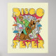 Este gráfico eletrificante é um retorno para a era da discoteca, com Shaggy e Scooby-Doo vestidos em vibrantes roupas de disco dos anos 70. Shaggy faz uma pose de dança com uma estrela na moda na testa e uma camisa padronizada, enquanto Scooby-Doo se senta ao seu lado, esportes de óculos escuros e um colar de bola de disco. O fundo se rompe com cores ousadas e elementos retrorreflectores como nuvens, estrelas e luzes da discoteca, todos colocados contra um texto gigante "FEVER DISCO" em uma fonte espessa e de estilo pop. Esse trabalho de arte encapsula o espírito divertido e enérgico da era, perfeito para fãs da cultura Scooby-Doo e da pop.