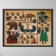 A Febre Norte da Cabina apresenta Moose, Urso, Peixe, Canoa com Paddles, cabana vermelha de madeira, pinheiros. fogueira e faixas de veados. Rustic Lodge parece design para sua casa.