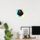 Uma peça de arte digital de um adorável corvo encarando o hetero da câmera entre um fundo com padrão vibrante