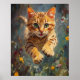 This vibrant artwork captures the raw energy and elegance of a Bengal cat mid-leap. With its striped coat, piercing green eyes, and extended paws, the feline bursts forward through a swirl of earthy tones and expressive brushstrokes. The abstract background enhances the sense of motion, making this piece a celebration of feline agility and wild spirit. Perfect for cat lovers, modern art collectors, or anyone who appreciates dynamic animal portraits.