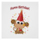 Feliz aniversário! Macaco bonito pronto para uma festa com chapéu festivo, sopro e confete