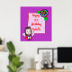 Personalize este poster, adicionando o nome da aniversariante a ele na área personalizada. Feliz aniversário da Fairy Girl de cabelos brancos e pretos com cores roxa, verde limão, vermelha e primária brilhantes! Poster do estilo de Arte Folk.