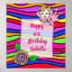 Personalize este poster, adicionando o nome da aniversariante a ele na área personalizada. Fairy Girl Happy Birthday, de cabelos brancos e loiros, com rosa brilhante, verde limão, amarelo. Poster do estilo de Arte Folk.